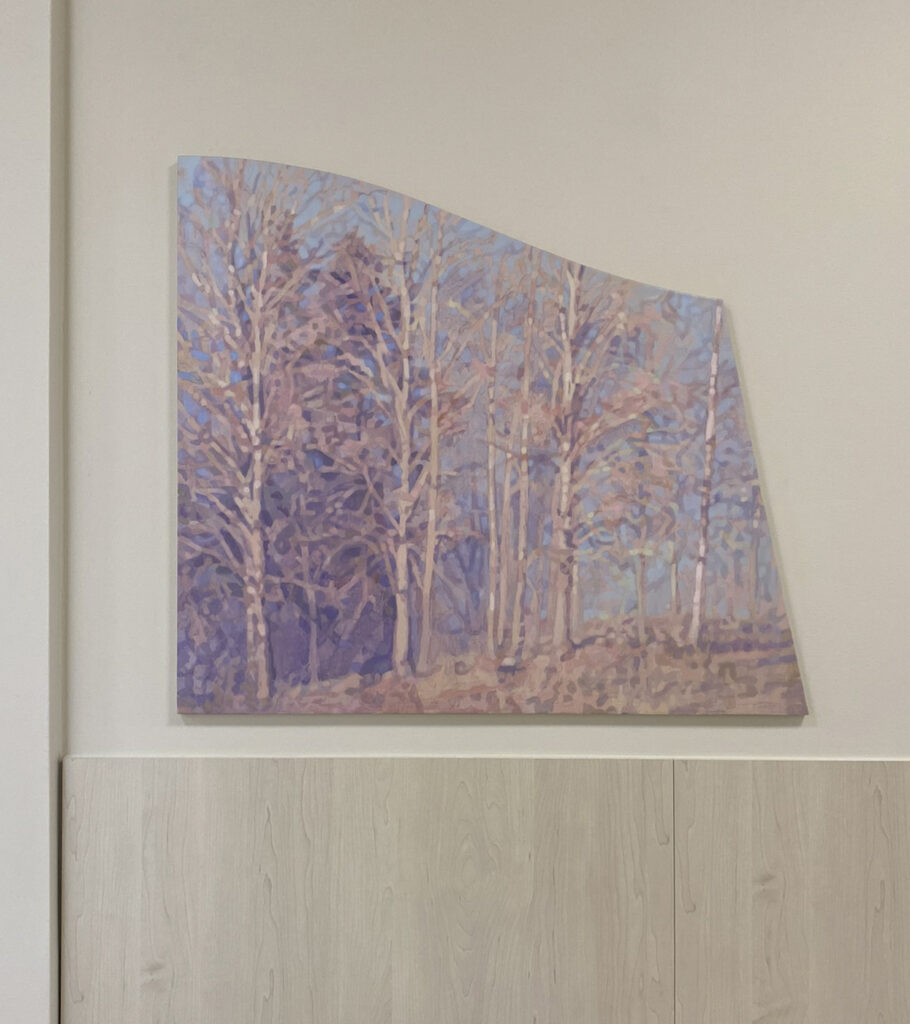 En konstgestaltning till Dagvården i Örnsköldsviks sjukhus, på uppdrag av Region Västernorrland. Målningarna samspelar med Kerstin Paillards motiv av moln i innertakets armaturer och till rummens färgsättning. Bland himlar och skogens träd kan behandlande patienter finna lugn.